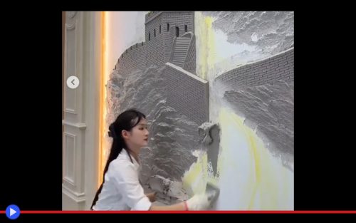 Il concetto percepito in modo trasversale dal senso comune, che vede la preponderante maggioranza della popolazione mondiale concentrata in un’area che racchiude Cina, India e le regioni monsoniche dell’Asia Meridionale, può tendere ad avere un chiaro effetto nella diffusione dei contenuti lungo i fiumi digitalizzati dell’informazione internettiana. Là dove i numeri contano e non solo da un punto di vista metaforico, quanto nel funzionamento di algoritmi matematici capaci di decidere cosa debba essere visto, e da chi. Ecco la maniera in cui determinati gesti creativi, compiuti da rappresentanti della nuova generazione degli artisti procedurali, tendono a fuoriuscire dal recinto limitato dei confini nazionali, trascendendo il semplice contesto che ne aveva consentito i natali. Così tecniche fortemente collegate ad un particolare aspetto dell’estetica territoriale, giunte sugli schermi più distanti, assumono significati totalmente nuovi e avveniristici, persino rivoluzionari. Questo il sentimento e tale il tono dei commenti relativi all’opera dell’autrice di murales Xiao Qi, nome che potrebbe costituire uno pseudonimo, originaria della città cinese di Chongqing, famosa per i propri alti grattacieli e il dislivello che la porta a svilupparsi su molteplici livelli sovrapposti. Meraviglia dell’architettura ed urbanistica contemporanea, nonché possibilmente il punto di partenza per una passione in grado di riempire, in senso pratico, gli spazi vuoti. Avete presente? Le ampie pareti bianche, scarne e impersonali, nelle grandi residenze o negli atri delle sedi aziendali, dove la mancanza di calore può suscitare un momentaneo senso di smarrimento nel cuore inquieto dei visitatori. Ed è proprio qui che operano i produttori di 浮雕壁画 (fúdiāo bìhuà) ovvero “murales a rilievo” concetto solo in apparenza vago, in grado di assumere alla confluenza dei fiumi Azzurro e Jialing un significato estremamente particolare. Oltre ad un costo, s’intende, in grado di raggiungere l’equivalente di migliaia di euro per i pezzi di maggiori dimensioni e pregio. Facendone di tale attività un campo di specializzazione proficuo, come desumibile dal canale ufficiale su DouYin (TikTok) dell’artista dove i primi tre video campeggiano con i thumbnail che offrono specifiche di contatto, per prenotare opere o lezioni della titolare. Esperta ed attrezzata praticante, non per niente incensata da letterali milioni di follower, di quella che può essere soltanto descritta come la perfetta unione tra cemento, pittura e scultura di finestre virtuali sulle meraviglie paesaggistiche ed architettoniche del suo vasto paese…