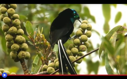 Tassonomicamente parlando il genere degli Astrapia si suddivide dunque ad oggi in cinque specie, ciascuna associata ad un diverso sistema di rilievi o montagne della Papua o Nuova Guinea. L’altitudine di appartenenza per questi uccelli può effettivamente variare, ma non risulta mai essere inferiore ai 1.400 metri, con particolare riferimento in questo caso all’A. di Huon o uccello di Rothschild il cui corpo misura 69 cm coda inclusa, tra i più studiati e meglio conosciuti a partire dal 1906. Incline a nutrirsi primariamente d’insetti e semi, come gli altri appartenenti al suo gruppo biologico, costituendo un importante contributore alla dispersione delle specie vegetali nel sostrato vegetativo della foresta. Proseguono la nostra carrellata, spostandoci verso l’alto e nell’entroterra, le due specie lievemente più grandi e di colore tendenzialmente cupo A. nigra (anche detto di Arfak, dal nome dei rilievi dove esso risiede) il cui disegno marrone sulla lunga coda giunge a costituire il principale tratto distintivo nei confronti della femmina, che risulta invece essere completamente di quel colore con apparenti finalità di mimetismo. Con una marginale attenzione al passare inosservati ancora presente nel già più vivace A. Stephaniae vagamente simile all’uccello Quetzal (Pharomachrus mocinno) per l’iridescenza dei colori e la forma della testa arrotondata. Considerazioni che passano del tutto in secondo piano, quando si prende in considerazione l’A. splendidissima delle montagne centrali, 39 cm di azzurro iridescente cangiante verso il verde, le lunghe piume caudali dalla striscia bianca simile a quella di una tuta da ginnastica, che si agita nel vento durante i propri complicati e memorabili rituali di corteggiamento. E quindi, per finire in bellezza, il già citato A. Mayeri, con fino a 1,2 metri di piume caudali, pari ad oltre tre volte la lunghezza dei 30 cm occupati dal restante corpo dell’animale. Una dotazione chiaramente poco funzionale all’efficienza e la sopravvivenza quotidiana, che per di più “costa” considerevoli risorse in termini di energia al fine di allungarsi nuovamente al sopraggiungere di ciascuna stagione degli amori. Una prerogativa che può essere inserita a pieno titolo nella teoria secondo cui i maschi di determinate specie di uccelli, mostrandosi capaci di mantenere il proprio aspetto eccezionale anche a discapito della praticità e convenienza, garantiscano il possesso nei confronti delle femmine di una prestanza fisica superiore a quella dei loro simili non altrettanto appariscenti. Il che tende a richiedere, come di consueto, una particolare serie di accorgimenti e straordinarie movenze…