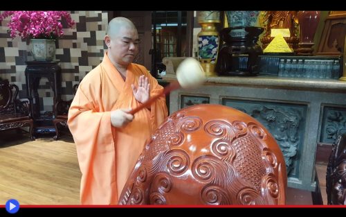 Dal punto di vista morfologico, il pesce di legno è dunque un tipo di xilofono da un singolo tono preferibilmente realizzato in legno di canfora (ma vanno bene anche ciliegio, palissandro, betulla) spesso descrivibile come un tamburo dalla forma sferoidale sopra un cuscino per la risonanza e con una fessura acustica posizionata al centro, che ricorda quella del tipico campanello attaccato al fastidioso collare tintinnante del povero gatto domestico o malcapitato cane. Il quale d’altronde, in assenza di battacchio situato all’interno, riceve l’attenzione del suonatore di turno a guisa di reiterata e accelerante percussione che produce un suono secco, limpido, variabile nel timbro e conseguente significato. Costruito tradizionalmente in molte dimensioni differenti, tale oggetto può in tal senso trovarsi dedicato a richiamare i monaci al passaggio delle ore con un rombo basso e ripetuto avendo un peso massimo di 250-300 Kg, piuttosto che costituire ausilio personale ed altrettanto portatile alle venerazioni, sottolineando i versi successivi con rintocchi acuti udibili soltanto a pochi metri di distanza. Altrettanto varie, nel contempo, risultano essere le guise dell’intaglio di partenza, dalla forma astratta sopra menzionata a vere e proprie sculture figurative, raffiguranti prevedibilmente un pesce o drago dall’elevato realismo visuale. Una scelta motivata, col trascorrere dei secoli, dalla stretta associazione del 木魚 a molteplici e divergenti leggende per quanto concerne la sua introduzione, dalla scelta cosciente di un monaco reincarnatosi in salmone con un albero sul dorso, il quale per espiare le sue colpe chiese che quest’ultimo venisse trasformato in valido strumento musicale. Piuttosto che la storia del collega itinerante fino alle remote terre d’India (ricorrente il tema di quel viaggio!) intento a riportare i sutra e dimostratosi incapace di rispondere alle domande del pesce che voleva diventare un Buddha, venne scaraventato da tale creatura dispettosa in un fiume. Perciò perse le sacre parole, decise di scolpire il traditore in un’effige, da percuotere più volte giorno e notte, finché non riconobbe i suoni che essa produceva come i versi delle scritture annegate. Ma erano davvero gli stessi? Ed arrivati a quel punto, faceva una qualsiasi differenza?
