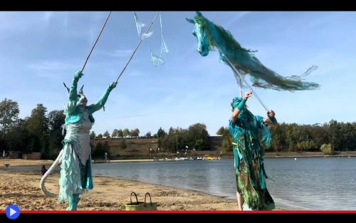 Il che permette di comprendere istantaneamente, per chi non dovesse avere dimestichezza con il canone del figurentheater o altri ambiti in cui il marionettista compare abitualmente sulla scena il tipo di lavoro artistico di cui stiamo parlando: qualcosa di divertente e accattivante al tempo stesso. Privo di pretese elitarie, senza per questo abbandonare la capacità inerente di spingersi nel mondo di ambiziose metafore ed astrazioni visuali. Come nell’ulteriore caso degno di essere citato, del cavallo che diventa una creatura acquatica affine al Kelpie della tradizione celtica. Mentre un figurante dal fantastico aspetto felino lo circonda di bolle cangianti costruite col sapone… Elementi disparati non del tutto conformi, la cui combinazione, nonostante tutto, tende a un risultato superiore alla combinazione delle singole parti. E non è forse questo il senso ultimo del teatro, di strada? La meta ideale di una lunga corsa fino al drammatico traguardo finale?