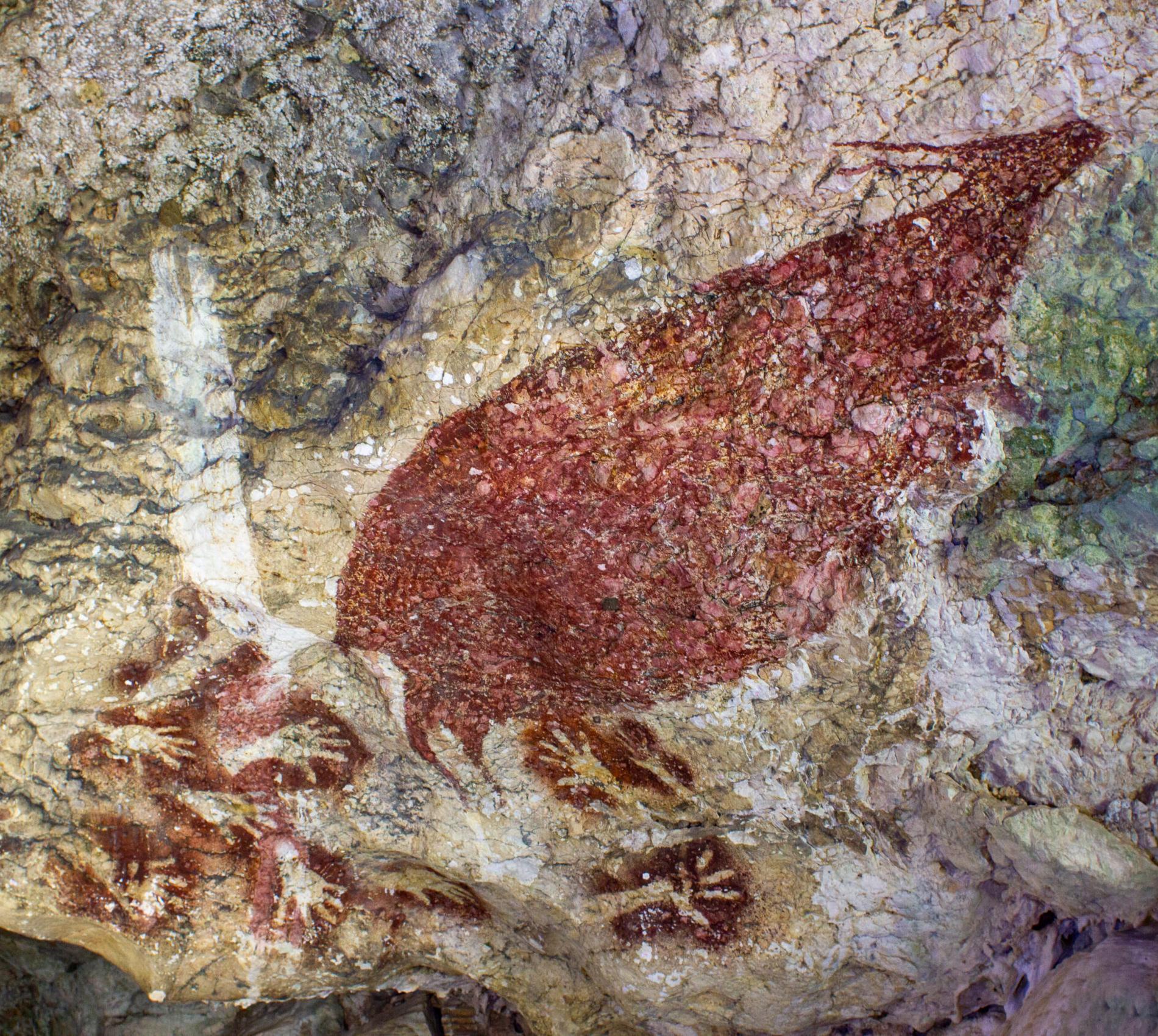 Dopo la formula di rito pronunciata sull’imboccatura della caverna, l’artista di Leang Tedongnge si lasciò alle spalle i membri della sua comunità impugnando saldamente il ramo e il cesto con la polvere impiegati per il suo importante lavoro. Così procedendo lungo la fila di torce, posizionate preventivamente prima di quel rito evocativo, raggiunse la camera interna dove schiere dei suoi insigni predecessori avevano tracciato i propri contributi degni di essere commemorati: soprattutto la figura familiare del babi hutan, suino di foresta, il muso appuntito e il corpo sovradimensionato simbolo di pregio ed abbondanza, ripetuto molte volte in varie forme e atteggiamenti. Ragion per cui in quel giorno fatidico, egli aveva già deciso di non essere da meno. Simili sarebbero sembrate le pregiate proporzioni del suo dipinto, mirato a celebrare un altro tipo di creatura catturata e consumata tanto spesso dal gruppo umano di Maros-Pangkep. Immersa la sua mano destra nel pigmento d’ocra, fabbricato dalle pietre d’ematite della valle, cominciò quindi con l’apposizione della propria firma elettiva, consistente nella serie plurima d’impronte a cinque dita. Prima d’iniziare, nella luce tenue, l’impressione delle corna sottili da cui avrebbe avuto il suo disegno del sapiutan, demone bovino della foresta. Scaltra ed agile creatura, nonostante l’altezza al garrese .pari al massimo ad un’ottantina di centimetri, capace di sparire tra i cespugli del fitto sottobosco del Sulawesi. Allorché l’artista, se non altro, di una cosa era sicuro: nel clima controllato e con l’assenza delle precipitazioni nella grotta, il suo tributo avrebbe attraversato intatto gli anni e le generazioni. Forse addirittura il ripetersi per 45.000 volte, di quello che i sapienti erano soliti chiamare il ciclo delle stagioni.