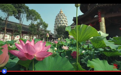 Cruciale nell’estetica del gusto trasversale dell’Estremo Oriente, è la commistione sincretistica d’influenze provenienti da passato, presente e futuro. Quasi come se il concetto di una linea temporale fosse secondario nei confronti della percezione olistica dell’Universo, percepito tramite il poliedrico strumento della mente umana. Scalinata che conduce gradualmente lungo l’effettiva comprensione dei modelli trasversali, non soltanto quelli artistici ma il fondamento stesso di una pratica filosofia di vita. Ciò che satura e pervade le venerazioni, concepite al fine sostanziale di raggiungere la pace che deriva dalla trascendenza della mente stessa. Per questo un tempio dedicato a Buddha ed i suoi molti aspetti può riuscire a trasformarsi, ancor prima che un luogo di pace dedicato al Tutto, nel culmine del tutto sensoriale di una vera e propria esperienza. Dalla giustapposizione si raggiunge l’empatia. E da questa, se guidati nella giusta direzione, la saggezza? Giudicate un po’ voi. Mettendovi nei panni di un visitatore che, raggiunta la Cina orientale di uno dei principali centri urbani prossimi alla vecchia “capitale del Sud” Nanchino, ovvero la città portuale di Changzhou, potrebbe scorgere al di sopra dello skyline fatto d’imponenti grattacieli cubici e altri arredi parametrici dei tempi odierni, qualcosa sulla via di Yancheng che può essere paragonato molto facilmente a un ananas di 91,9 metri, o pigna che indica convintamente tra le regioni dell’azzurro cielo soprastante. In cui ogni spazio per i semi è adibita a residenza di una singola statua dorata; l’espressione pacifica e distante, gambe conserte e mani giunte, l’acconciatura che ricorda vagamente il profilo di una montagna. Resta indubbio in tali circostanze come la condivisione di nozioni possa essere la chiave della comprensione del contesto. Per cui un sinologo che abbia esperienza delle propensioni iconografiche locali, non tarderà di certo ad identificare tale oggetto con il fiore che dal fango nasce al fine di raggiungere la perfezione delle forme, il loto (gen. Nelumbo). E colei che tanto fieramente si palesa in plurima sequenza lungo il suo cilindrico schema reticolato, niente meno che la dea Guanyin/Avalokiteśvara, salvatrice dalla sofferenza, accompagnatrice di coloro che la venerano verso l’ulteriore stato della consapevolezza che conduce alla suprema pace interiore. L’entità che abbraccia questo mondo e riesce a farlo grazie ad una compassione senza limiti, così efficientemente declinata in una moltitudine di braccia, volti e manifestazioni. Una valida fonte d’ispirazione, nella persistente verità dei fatti, per ornare gli ampi spazi sacri ad ella dedicata con la moltitudine di statue in grado di rappresentarla. Laddove l’aspetto esterno non è altro che un anticipo, delle impressionanti meraviglie custodite entro le mura del rivisitato Bǎo Lín Sì (宝林寺) o Tempio della Foresta del Tesoro a Changzhou…