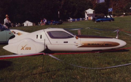 Alex Tremulis, figlio d’immigrati greci provenienti dalla regione di Sparta, si seppe dimostrare a tal proposito ancora una volta come la persona giusta nel luogo ed opportuno momento, così come nell’immediato dopoguerra, quando coinvolto dall’imprenditore Preston Tucker nella creazione della sua omonima, sfortunata quanto avveniristica vettura, aveva saputo coniugare meriti estetici a funzioni straordinariamente avanzate per l’epoca, quali freni a disco, cinture di sicurezza, sospensioni indipendenti ed un’iniettore di carburante capace d’interagire direttamente coi cilindri. Ciò sebbene il caso della X-100, come esemplificato dal suo nome “Gyronaut” riprendesse nella pratica un diverso filone di quella lunga e articolata carriera, quello iniziato con la vettura a due ruote capace di auto-bilanciarsi Ford Gyron, presentata al Detroit Motor Show del 1961, ma soprattutto la Gryonaut X-1, motocicletta aerodinamica detentrice del record di velocità del 1966, con i 395 Km/h presso le pianure saline di Bonneville. Vicinanza nello spirito se non nella sostanza, essendo la nuova vettura dotata di ben tre pneumatici di appoggio stradale, sebbene coadiuvati da speciali accorgimenti in merito alla linea, priorità e composizione di quanto si trovava al di sopra di essi. Circa 20 anni erano trascorsi, d’altra parte, al momento della ripresa di quel nome. Così all’epoca titolare di uno studio indipendente dall’elevato grado di prestigio, che già stava collaborando con Subaru per il popolare pick-up compatto BRAT/Brumby, il celebrato Tremulis chiamò a raccolta fin da subito l’ingegnere Ron Jones del dipartimento tecnico dell’azienda, il quale coinvolse a sua volta l’abile carrozziere John McCollister. Volendo dare priorità alla riduzione del peso, i tre produssero in tal senso il futuribile triciclo con il motore montato posteriormente, la cabina in posizione arretrata ed il lungo naso aerodinamico, simile alla punta di un missile o una nave spaziale. Soluzioni valide alla creazione della vettura di appena 311 Kg, circa la metà della Subaru Rex originaria, capace in linea di principio di mantenere gli 88 Km di velocità auspicati con poco meno 30 CV di potenza, paragonabili a quelli di un moderno tosaerba a motore. Ipotesi che si decise di mettere immediatamente alla prova, dopo il completamento del primo prototipo a budget ridotto presso il Technical Center di Santa Ana, California, affrontando un test di 100 giri dell’Ontario Motor Speedway, pari per l’appunto ad esattamente un centinaio di miglia. L’auto venne caricata in quel fatidico 5 agosto del 1980, chiaramente, con un singolo gallone di carburante ma nel primo tentativo l’obiettivo non fu raggiunto, sebbene mancasse soltanto un singolo giro al suo coronamento finale. Dal che nacque l’idea di tentare nuovamente, facendo guidare questa volta il veicolo allo stesso ingegnere Ron Jones, che aveva un peso corporeo particolarmente contenuto. Il che gli permise, in effetti, di superare la cifra simbolica di un giro e mezzo. La via verso il progetto originale di Tremulis e Lamm, a questo punto, sembrò spianata.