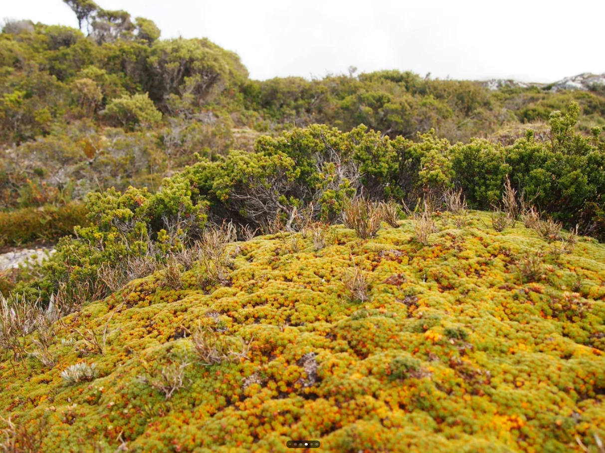Volendo a questo punto entrare nel particolare, attribuendo a questa serie di elucubrazioni una terminologia più prettamente scientifica, si può ricorrere a una classificazione sistematica di questo tipo fenomeni, paesaggistici e botanici al tempo stesso, in base all’effettivo grado di miniaturizzazione osservabile nella progressione offerta da una carrellata videografica, o il ricordo di un’effettiva e singolare esperienza. A partire dalle alture di quel parco sopramenzionato, intercalato dai numerosi laghi glaciali, cui si frappongono le valli digradanti con i rispettivi micromondi, a loro modo rispondenti ad una logica dettata dall’ambizione vegetale alla sopravvivenza. Dove il caso delle chiome dal più alto grado di preminenza, trova l’espletamento pratico e circostanziale di una certa varietà di eucalipti nani e sclerofille, dalle foglie rigide adattate ai climi secchi non lasciando traspirare più di minime quantità dell’acqua contenuta nei propri rami e steli. Cespugli come quelli appartenenti al genere Monotoca, con i caratteristici margini arrotondati e la cuticola spessa capace di riflettere ed incamerare la splendente luce dell’astro diurno. Ma sono proprio gli alberi simbolo del continente australe, in altri luoghi capaci di raggiungere i 70-80 metri, a colpire con la loro compattezza rasoterra ed il disordinato susseguirsi dei loro rami straordinariamente contorti. Fino alla sostanziale formazione di un krummholz, termine tedesco riferito all’aggrovigliamento deformato e schiacciato dal vento, tipico delle brughiere d’alta quota, in questo caso costituito soprattutto da specie come E. coccifera, vernicosa e subcrenulata. Lungi dal costituire la parte di grandezza inferiore della foresta fin qui discussa, tali macchie con l’altezza media tra il mezzo ed un metro lasciando effettivamente il posto mentre ci si muove innanzi a un tipico tappeto verdeggiante, ancor più prossimo agli spazi menzionati e dimostrati con i posti virali cui facevo accenno nel paragrafo soprastante. Trattasi allorché di un altro tipo di fenomeno, frutto di un ambito botanico riassumibile col termine ad ombrello di Tasmanian cushion plants. Piante a cuscino: mai metafora fu maggiormente appropriata, al fine d’identificare visualmente un gruppo di sei famiglie, egualmente indotte dalla convergenza evolutiva ad assumere una serie di valide contromisure contro le vigenti asperità del proprio clima di appartenenza. Consistente nell’abito di un fitto tappeto, formato da steli bassi e interconnessi, sincronizzati nella crescita con l’unica esclusione di piccole rosette apicali, impiegate da ciascuna varietà nel tentativo di attirare l’attenzione dei trasportatori di pollini necessari all’efficiente riproduzione. Piante del tutto endemiche come la Donatia novae-zelandiae dai fiori gialo canarino, sbocciati sopra il verde delle foglie lineari e carnose, lunghe 5-6 mm e dotate di fitti peli alla base. O la Dracophyllum minimum, con strutture fotosintetiche spesse e rigide, concave, pungenti. Ma fiori leggiadri dai 5 petali perfettamente candidi, leggiadri nella propria inconcepibile evidenza. Veri e propri capolavori dell’evoluzione, anche nei casi meno iconici, capaci di conservare il poco calore accumulando l’umidità, fino al mantenimento di una temperatura media superiore anche di 10 gradi alla temperatura dell’aria circostante. A sempiterna quanto eccezionale dimostrazione di come un ambiente insolito possa determinare l’effettivo aspetto di ogni essere vivente al proprio interno. Scatenando i ritmi fervidi dell’immaginazione inquisitiva digitalizzata.